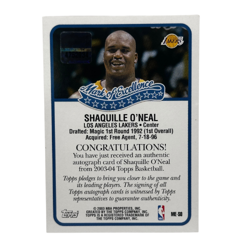 2003 Topps Mark of Excellence Shaquille O’Neal Autograph