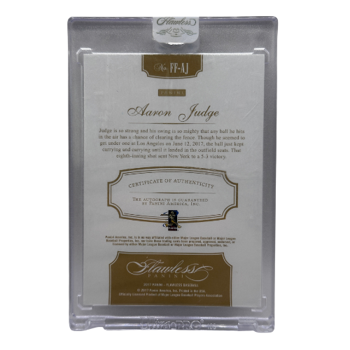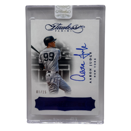 This listing features a rare and premium 2017 Panini Flawless Aaron Judge Rookie Autograph, serial numbered /15. As one of the most prestigious brands in modern sports cards, Panini Flawless is known for its ultra-limited print runs, on-card signatures, and high-end design — making this one of Judge’s most elite rookie-year cards.