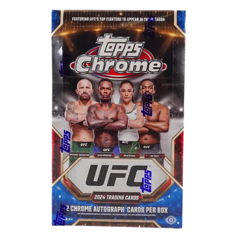 Brace yourselves for a knockout experience with the return of the 2024 Topps Chrome UFC Hobby Box! Get ready to dive into a world of autographs, inserts, refractors, and chases that will have you at the edge of your seat. The octagon is set, the crowd is buzzing, and Topps Chrome UFC is here to bring the ultimate thrill to your collection!