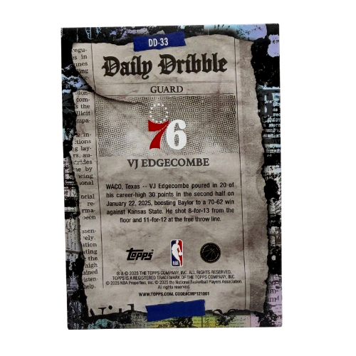 2025-26 Topps – VJ Edgecombe The Daily Dribble RC #DD-33