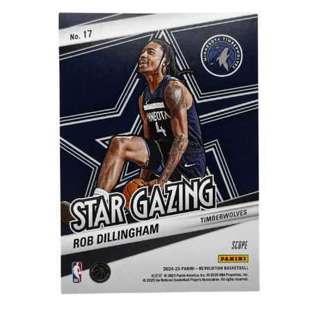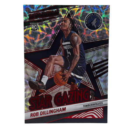 Add a dynamic rookie card to your collection with this 2024-25 Panini Revolution “Red Star Gazing” Rookie Card featuring Rob Dillingham. Serial numbered to 135, this visually stunning insert combines Revolution’s signature bold design with a vibrant red finish, making it a must-have for collectors seeking standout rookie parallels.