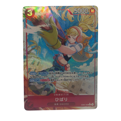 This Hibari Alternate Art card from the One Piece Card Game: EB-03 Heroines Edition (Japanese) showcases beautiful, character-focused artwork exclusive to this special set. Heroines Edition cards are highly sought after for their aesthetic appeal and limited availability.