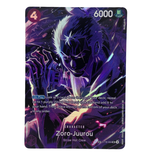 Unleash the strength of the Straw Hat swordsman with this Zoro-Juurou ST18-004 Special (SP) card from Bandai’s One Piece TCG – Legacy of the Master (OP-12) set. Featuring striking artwork and premium foil treatment, this SP rarity card captures Zoro’s mastery and iconic presence, making it a centerpiece for both competitive players and collectors.