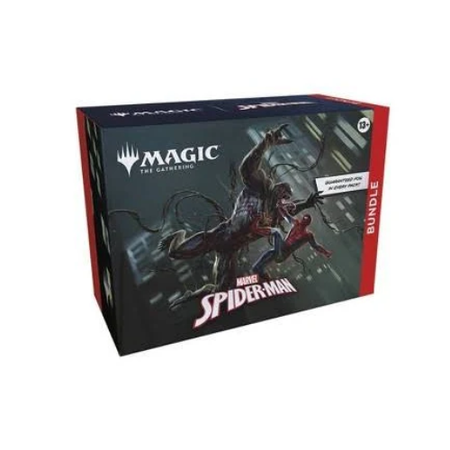 Gather web-slingers from across the Spider-Verse and team up to take down the sinister foes that threaten the city with a bundle full of cards and exclusive accessories. This Bundle contains 9 Magic: The Gathering | Marvel's Spider-Man Play Boosters (each containing 14 cards), 1 Traditional Foil alternate-art promo card, 15 Traditional Foil Basic Land cards (including 5 with Full Art), 15 nonfoil Basic Land cards (5 with Full Art), 1 oversized Spindown life counter, 1 card storage box, and 2 reference cards.