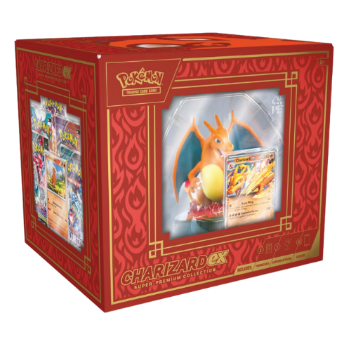 Charizard Guards Your Favorite Card! With explosive attacks and huge HP, Charizard ex has a commanding presence on the battlefield! Bring that burning tenacity to life on your desk, bookcase, or nightstand with an awesome Charizard figure featuring translucent fire effects to show off a favorite card—like the foil Charmander, Charmeleon, or Charizard ex you also get in this collection! Even more fun awaits in a stack of 10 booster packs from different Pokémon TCG expansions.
