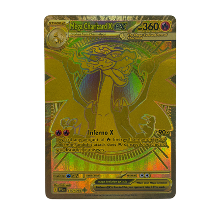 A centerpiece for any collection, the Pokémon TCG: Mega Charizard ex 130/094 Gold NM showcases the iconic Fire-type in a brilliant gold finish. This rare card captures Charizard’s power and prestige, making it a must-have for serious collectors and Pokémon fans alike.