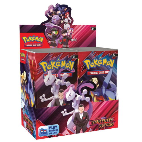 Pokemon Trainers, be on high alert! The nefarious Team Rocket is setting its latest plan into motion, and heroic Trainers are racing to stop it. Join forces with the likes of Cynthia and Garchomp ex, Ethan and Ho-Oh ex, or Arven and Mabosstiff ex... Or reconsider your loyalties and fight alongside Team Rocket's Pokemon like Mewtwo ex-under the command of Giovanni! Choose a side, assemble your allies, and battle boldly in the Pokemon TCG: Scarlet & Violet-Destined Rivals expansion!